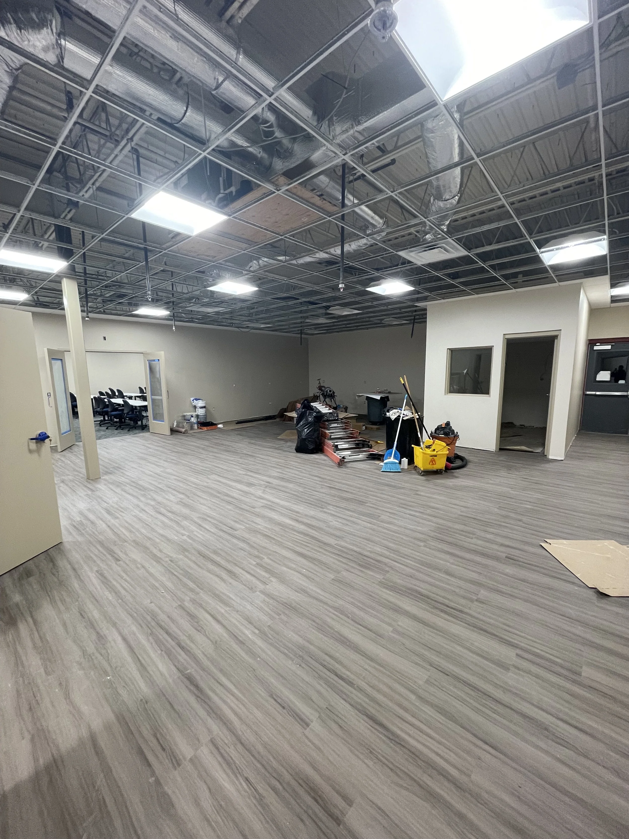 Scope of work for this project consisted of Sprinkler and Fire Alarms upgrades, build-out of 2500 sqft+ of unfinished commercial space, flat rubber roof replacement, roof air handler replacements, to mention a few items. Commercial space build-out involves the transformation of a raw or existing commercial space into a functional environment tailored to the specific needs of a business. This process encompasses various elements, including architectural design, interior finishes, electrical systems, plumbing, and compliance with local building codes and regulations. A successful build-out ensures that the layout optimizes workflow, enhances aesthetics, and aligns with the company's brand identity. Attention to detail and collaboration with contractors, architects, and other stakeholders are crucial to delivering a space that not only meets operational requirements but also impresses clients and employees alike.